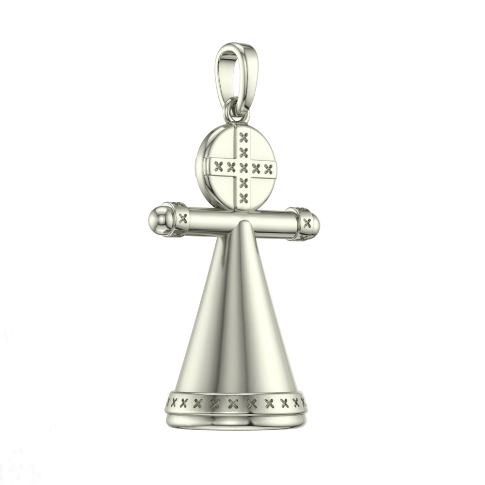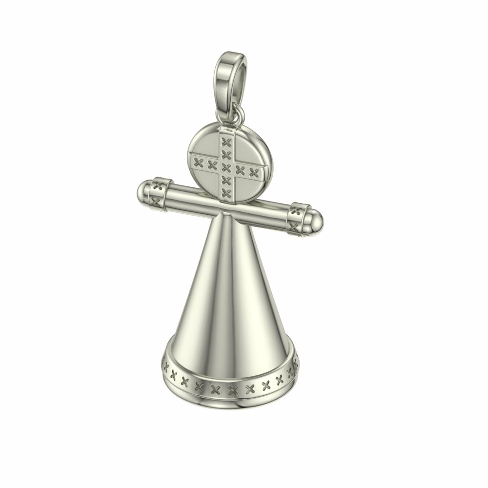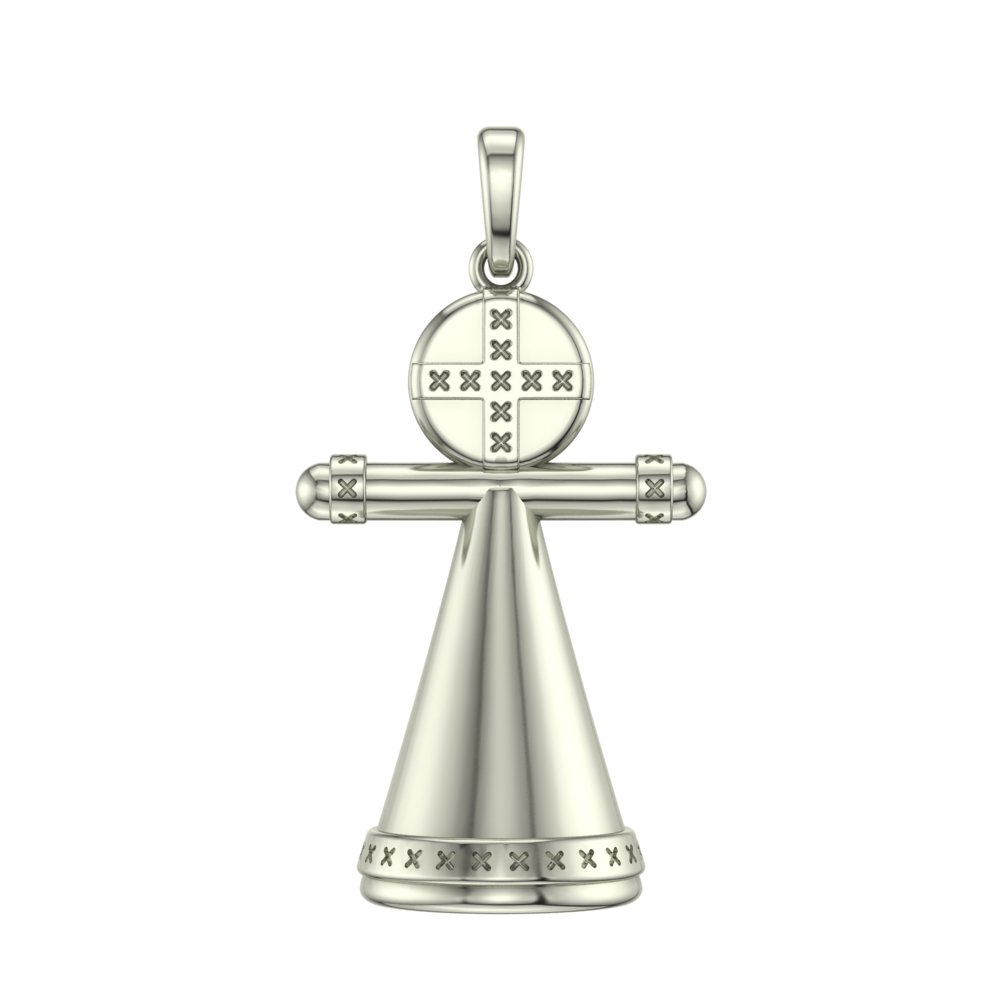 Цей унікальний, об’ємний підвіс виготовлено з білого золота 585 проби та оздоблено якісною білою полімерною емаллю, що надає йому вишуканого та глибокого вигляду. Об’ємний дизайн та біла емаль додають підвісу особливої виразності та привертають увагу до деталей. Підвіс ідеально доповнений міцним ланцюжком якірного плетіння з білого золота, що підкреслює його елегантність і витонченість. Він поєднує традиційні символи з сучасним стилем, створюючи неповторний аксесуар для вашого повсякденного або святкового образу.