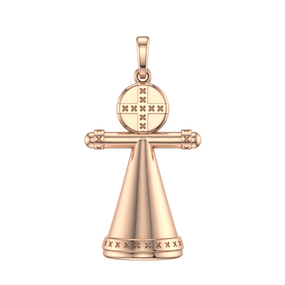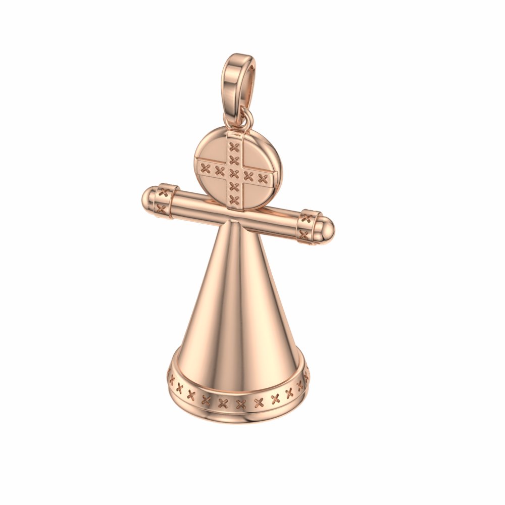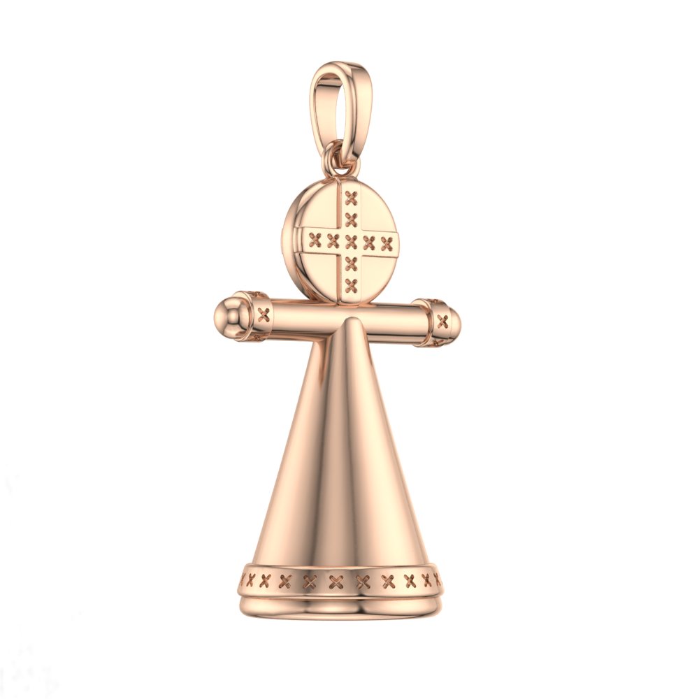 Цей унікальний, об’ємний підвіс виготовлено з червоного золота 585 проби та оздоблено якісною білою полімерною емаллю, що надає йому вишуканого та глибокого вигляду. Об’ємний дизайн та біла емаль додають підвісу особливої виразності та привертають увагу до деталей. Підвіс ідеально доповнений міцним ланцюжком якірного плетіння з червоного золота, що підкреслює його елегантність і витонченість. Він поєднує традиційні символи з сучасним стилем, створюючи неповторний аксесуар для вашого повсякденного або святкового образу.